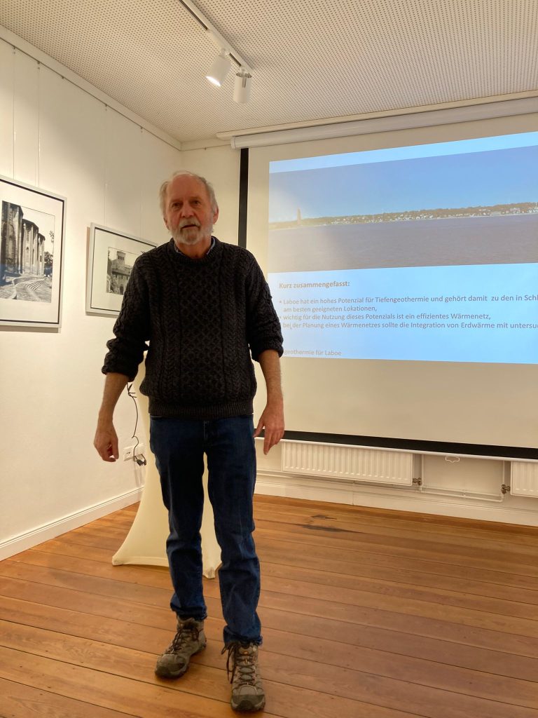 Der Geophysiker Dr. Reinhard Kirsch – ehemaliger Mitarbeiter des Landesamtes für Landwirtschaft, Umwelt und ländliche Räume (LLUR) und jetzt Inhaber des Beratungsbüros GEOIMPULS – hat in seinem Vortrag am 25. November 2025 die besondere geologischen Formationen für die Region Kiel und Umgebung hervorgehoben und die sich daraus ergebenen Potenziale zur Nutzung des Tiefen-Thermalwassers in 1500-2000m Tiefe als Wärmequelle diskutiert.